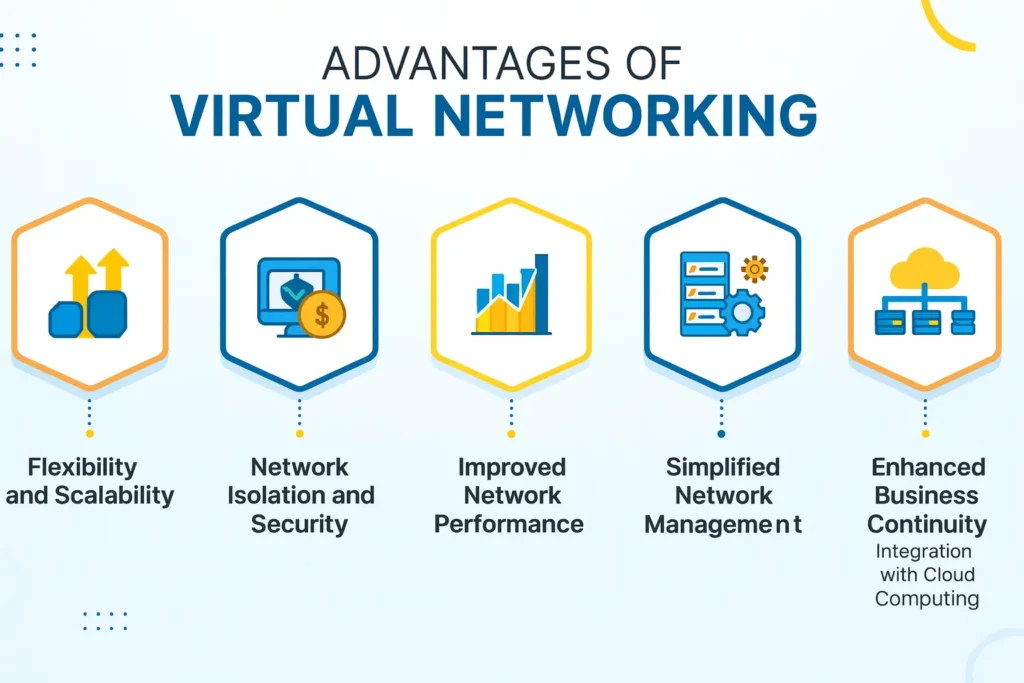 Virtual networking offers several advantages compared to traditional physical networking. Here are some key advantages: