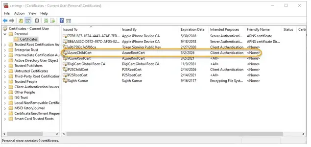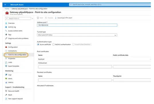 - Import the client certificate generated in the Azure Point-to-Site configuration.