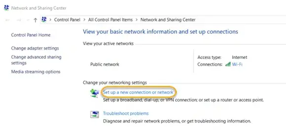 Open the Network and Sharing Center and click Set up a new connection or network.